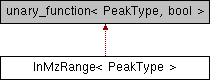 Predicate that determines if a peak lies inside/outside a specific m/z range. More...
